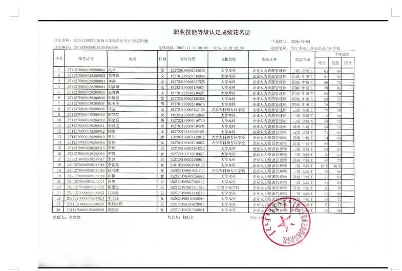 龙池职业培训学校第4批认定成绩公示